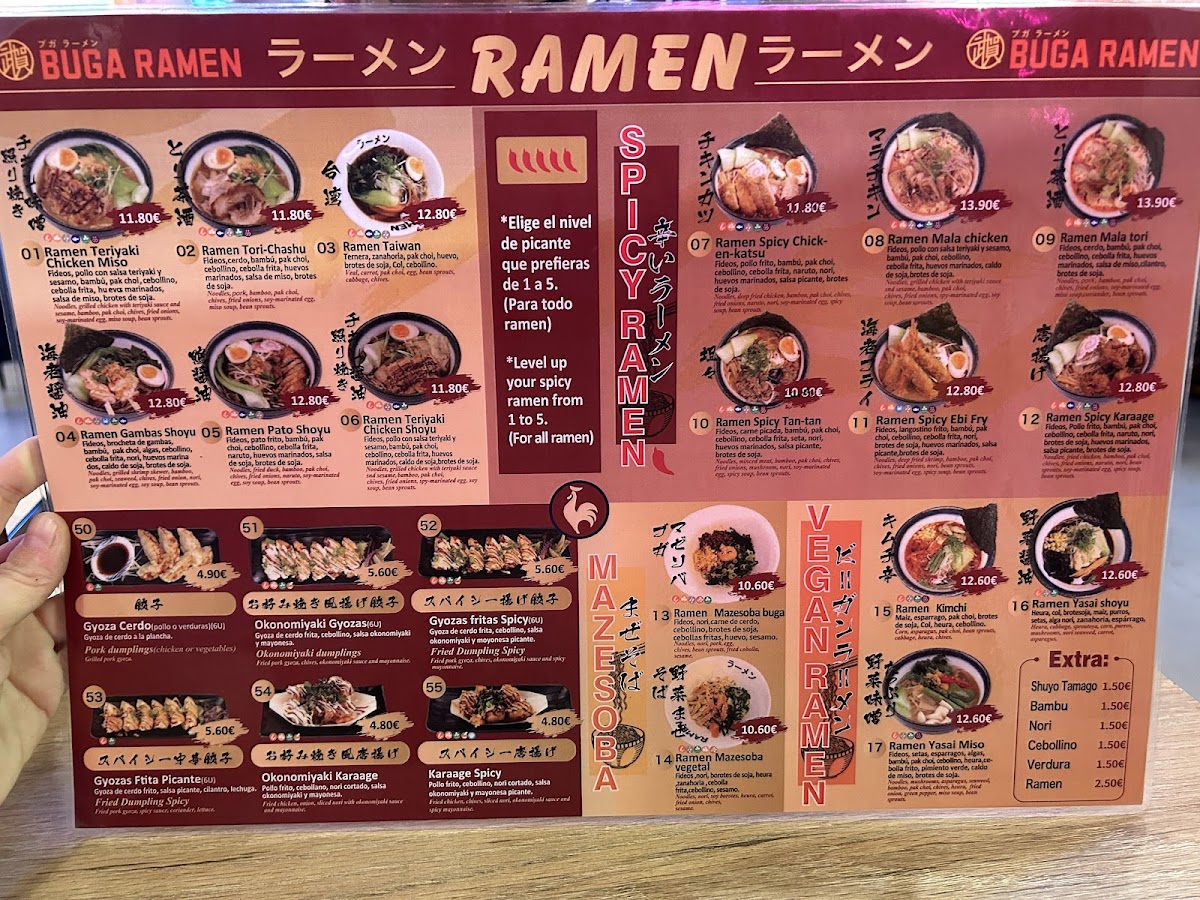 Buga Ramen Valencia offers a menu that blends comforting Japanese classics with casual, approachable dining. The selection focuses on ramen bowls rich in flavors like the duck and teriyaki chicken varieties, alongside satisfying small plates such as gyozas and bao buns. You can also find spicy options for those who enjoy a bit of heat, as well as lighter bites like edamame to share.